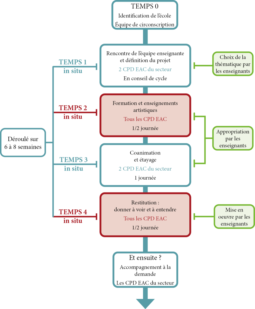 ▷ Formation in situ d’enseignants sur le temps scolaire, en Arts plastiques, Musique et Danse.